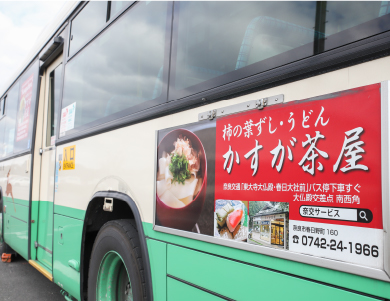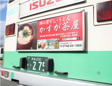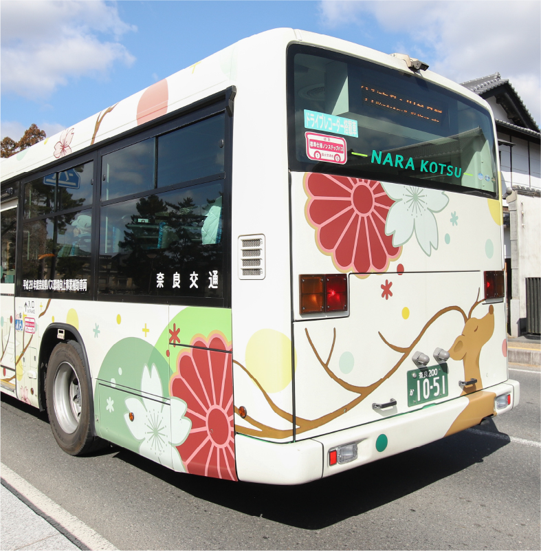 奈良県内全域を網羅する奈良交通バスを利用したメディアで地域に密着した宣伝広告が可能です。観光客も多く訪れる古都の街を走り、お客様の「想い」をお届けします。奈良交通バス広告で地域に寄り添った広告をご提案いたします。