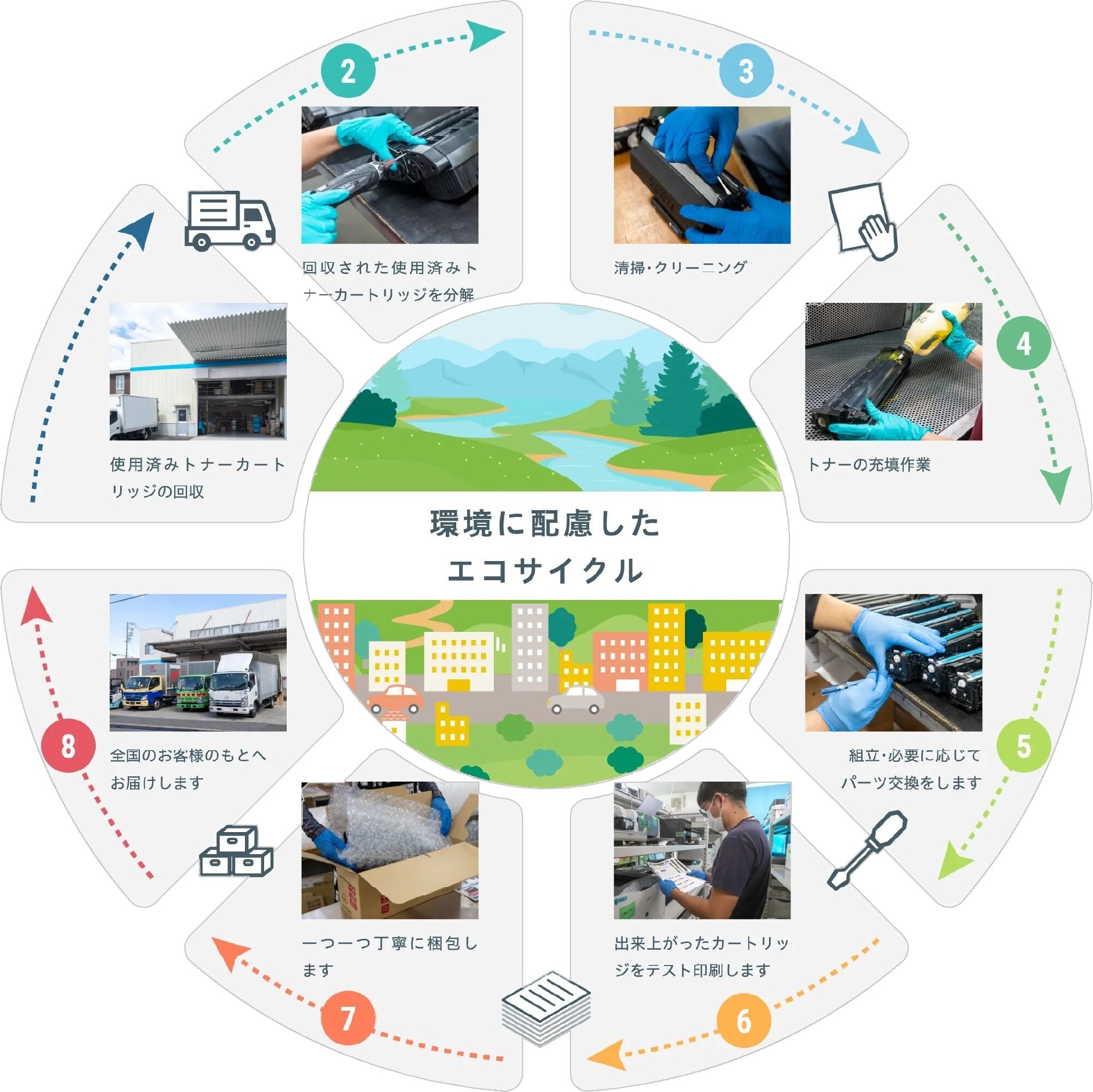 確かな品質、環境へのやさしさ、オフィスの経費削減を叶えるリユーストナーカートリッジを、スピーディーにお届けいたします。一度使用するだけで捨てられていたトナーカートリッジを低価格で再生するリユースシステムです。無駄なく資源を再利用することで、環境への配慮とオフィスへの高いコストパフォーマンスを実現しています。